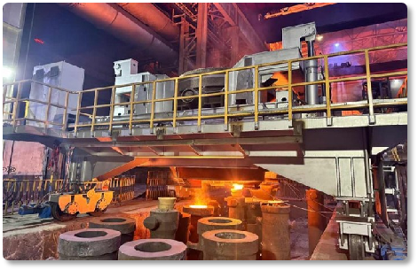 The 45-ton LF Ladle Furnace is a critical station for enhancing molten steel purity. It performs deep desulfurization, precise alloying, and temperature control to remove impurities and fine-tune composition, providing high-quality, homogeneous steel for subsequent forging processes.